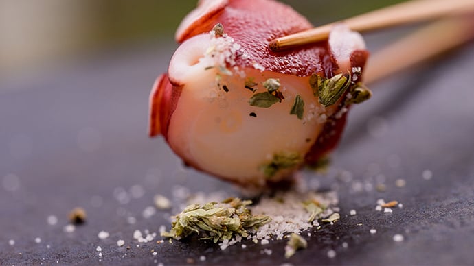 ・ 山椒マリネ:シチリア産の高級オリーブオイルと山椒を使った和風マリネソース